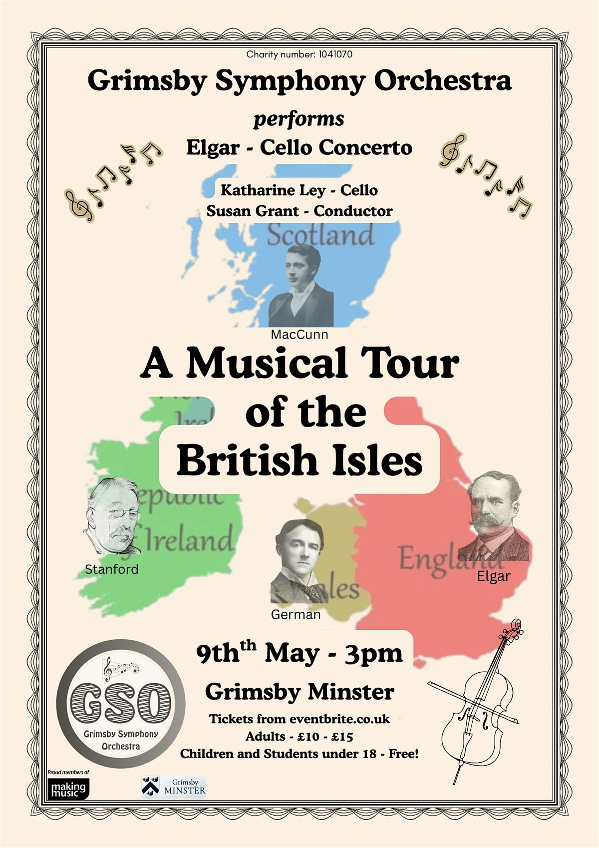 Join us at Grimsby Minster for a fun and relaxed afternoon exploring the rich sounds of the British Isles. This in-person event happens on 9 May 2026 at 3:00 pm (BST). Whether you're a music lover or just looking for a great time, enjoy a mix of traditional and modern tunes in a beautiful setting. Bring your friends and get ready for a memorable musical journey! The GSO will be joined by Katharine Ley performing Elgar's Cello Concerto.