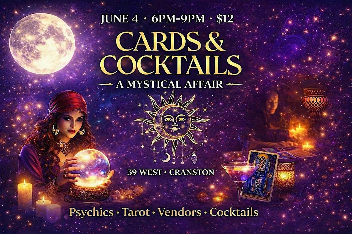 Welcome to Cards and Cocktails - A Mystical Affair! Join us for a night of Serenity and Spirits. Amagical evening filled with tarot card readings, psychics, reiki, charkra clearings, crystals mystical cocktails, and enchanting vibes. Get ready to tap into your intuition and discover what the future holds for you.