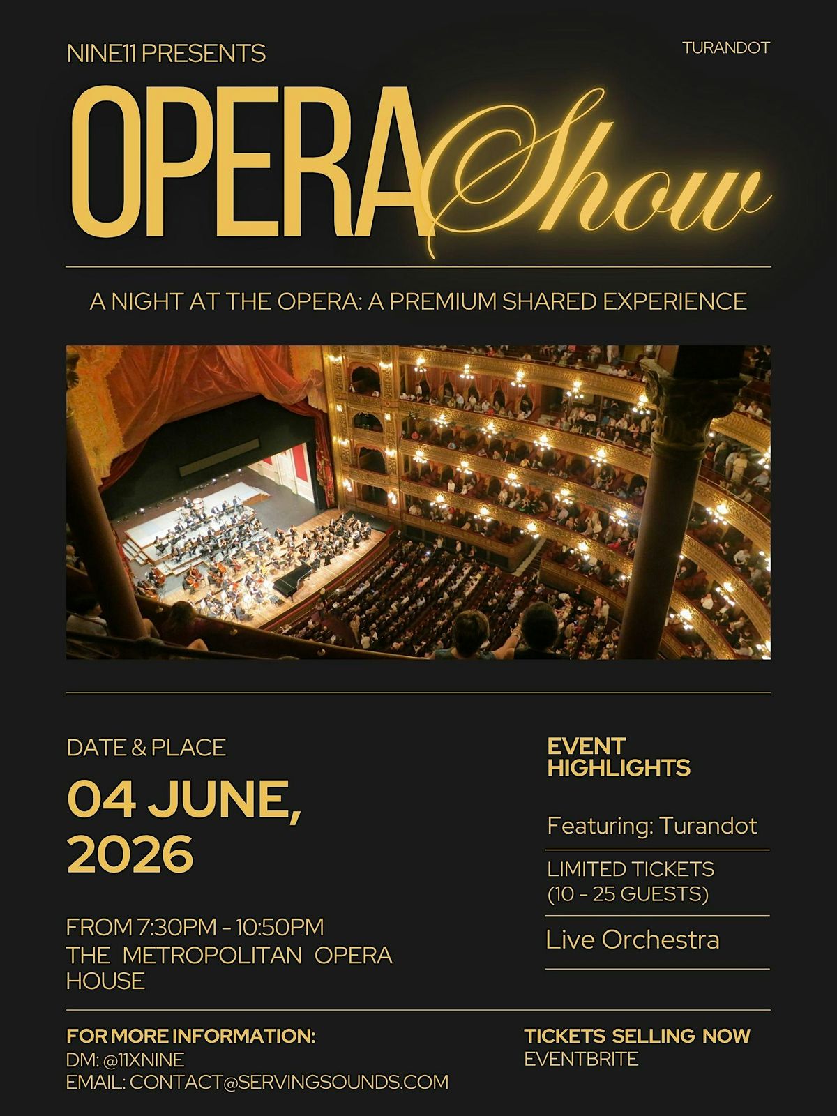 A premium shared experience at the Met Opera House bringing you into the world of Turandot.