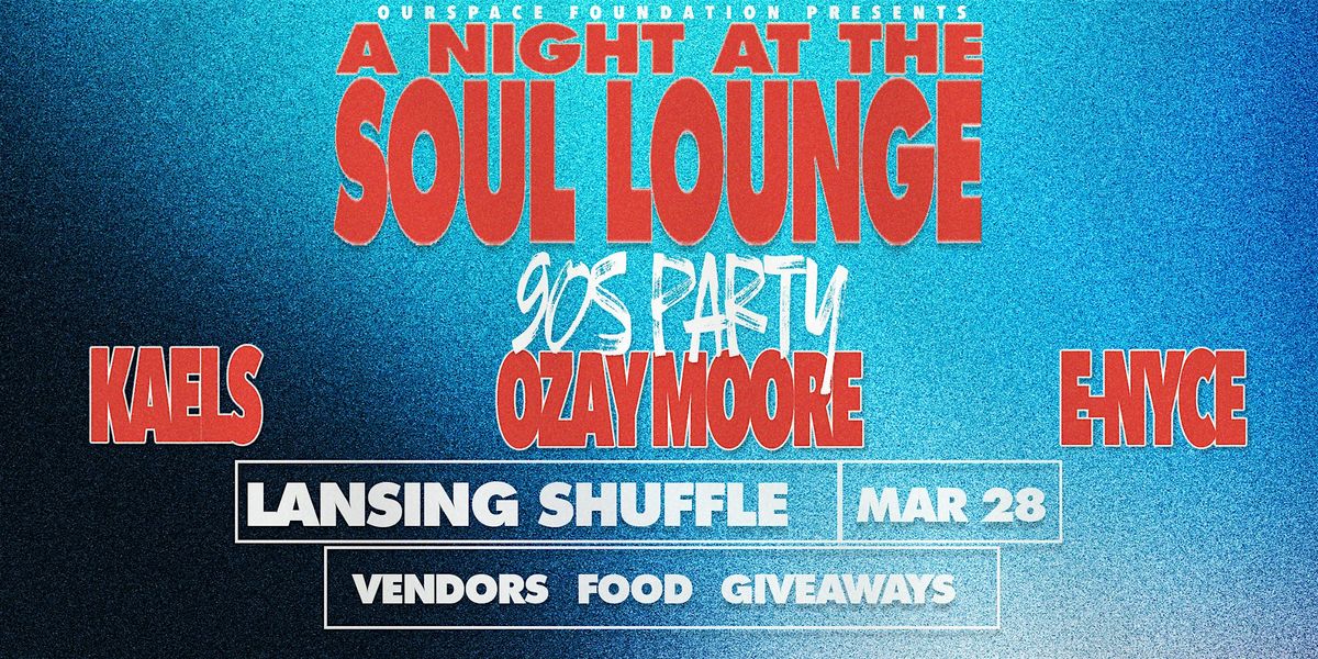 Join us for the 90s Edition of A Night at the Soul Lounge on Friday, March 28 from 9PM–2AM at Lansing Shuffle.