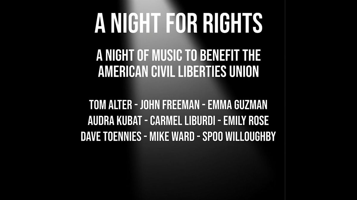 Nine Detroit area songwriters perform for the benefit of the American Civil Liberties Union. Doors open at 7:00 with the music to begin at 8:00. Each performer will do a 15 minute set. All ticket proceeds will be donated to the ACLU. Additional voluntary donations will be welcomed at the show. Seating is limited so buying in advance is a good idea.
