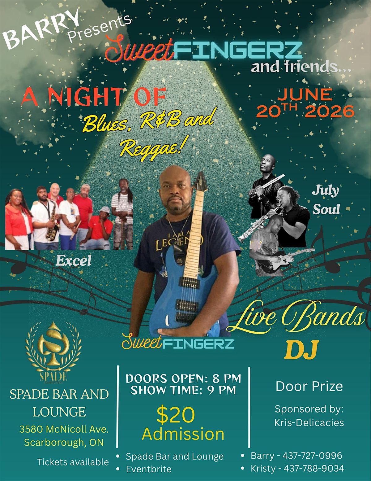 Barry presents SweetFingerz and friends with a night of soulful Blues, R&B and Reggae. Sit back, dance, sing, and enjoy as the music touches your soul and carries you on a journey of rhythm, passion, and pure good vibes. Let the smooth melodies and uplifting beats set the tone for an unforgettable evening filled with energy, connection, and exceptional live performances. From heartfelt vocals to captivating instrumentals, each moment is designed to move you, inspire you, and keep you feeling alive. Whether you're looking to unwind, celebrate, or simply enjoy great music, this is the perfect night out. Gather your friends, embrace the atmosphere, and let the sounds of the night create memories that will stay with you long after the music fades.