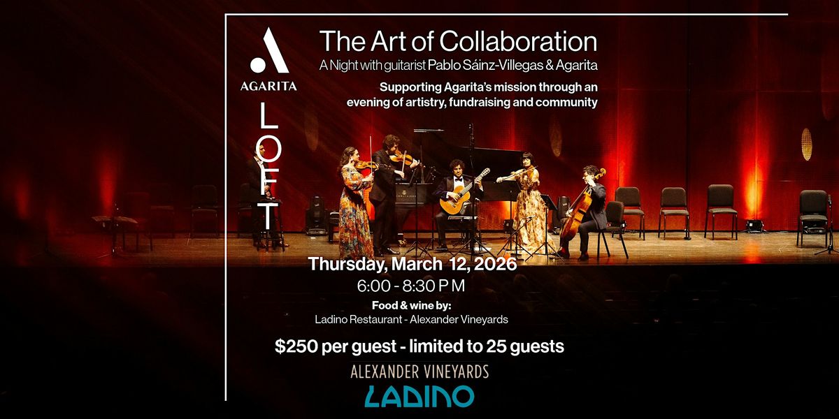 At the Agarita Loft, internationally acclaimed guitarist Pablo Sáinz-Villegas will perform alongside the musicians of Agarita. The evening includes premium seating, exceptional culinary offerings, and an intimate performance designed for a small group. In addition to performing, we will dive into what collaboration looks like on the stage.