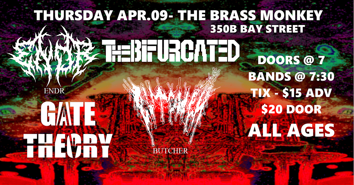 Brutal metal with Endr - Experimental metal with Gate Theory - Death metal with Butcher and Techno Industrial Thrash with The Bifurcated