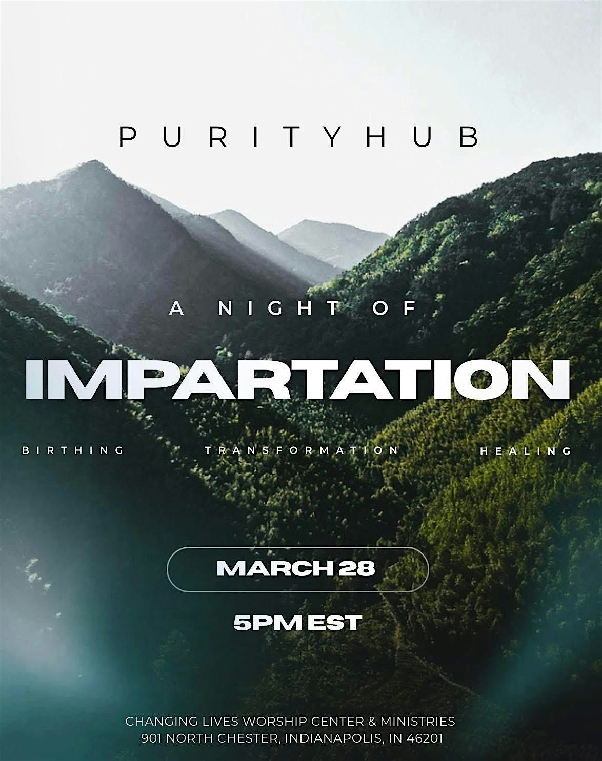 Join the PurityHub family March 28th not just for our 1 yr. celebration but for a Night of Impartation. This is where heaven meets earth!