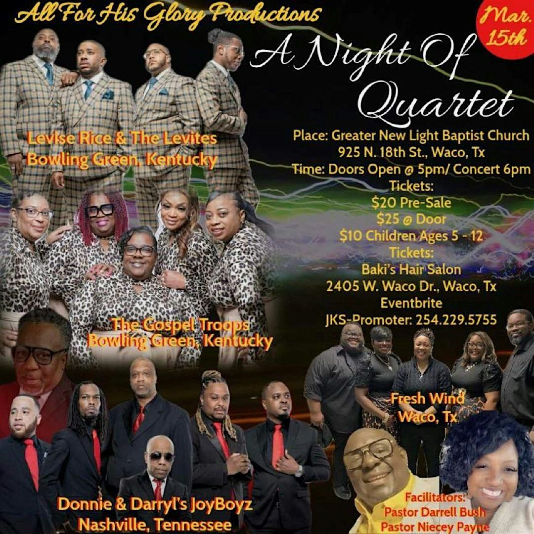 Come out for an Evening of Great Quartet Music featuring 3 Spirit Filled Gospel Quartert's From Kentucky and Tennessee.