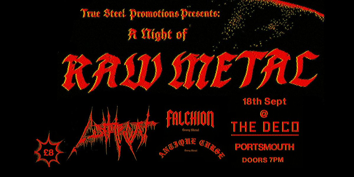Support comes from FALCHION, a traditional heavy metal band from Belfast, with their main influences being Iron Maiden, Satan, and Thin Lizzy, to name a few. They've just finished recording their phenomenal first demo, catch these guys at not only one of their first gigs in the UK, but one of the first ever!