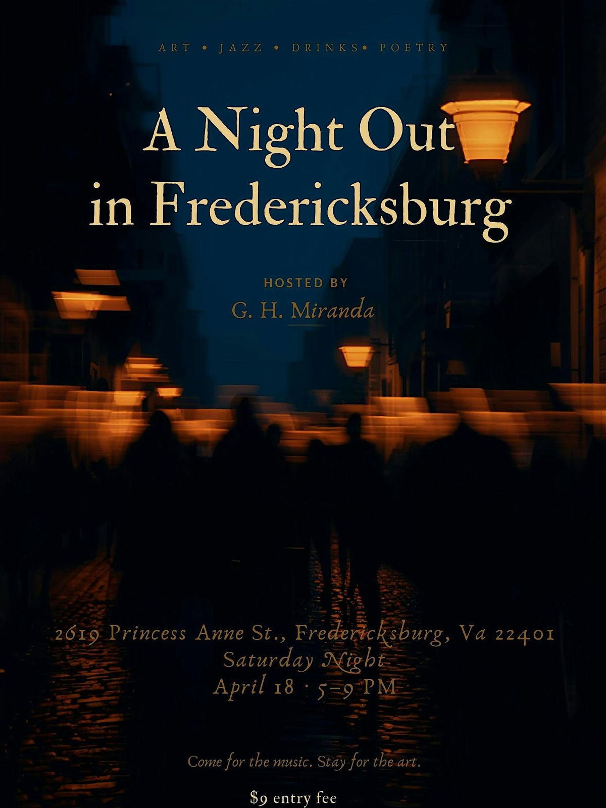Experience Fredericksburg after dark through an intimate evening of art, music, and creative expression. This pop-up art show brings together local visual artists, poets, and musicians to transform the space into a living, breathing gallery—one that reflects the beauty, solitude, and rhythm of the city at night.