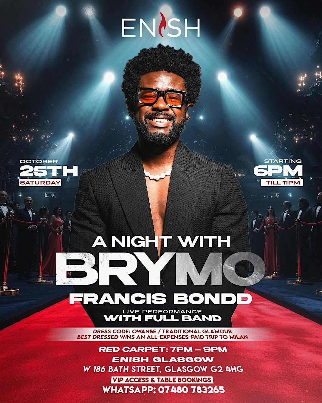 Get ready for an unforgettable night of music, culture, and class as Brymo, one of Nigeriaβs most soulful voices, performs live with his full band at Enish Glasgow.