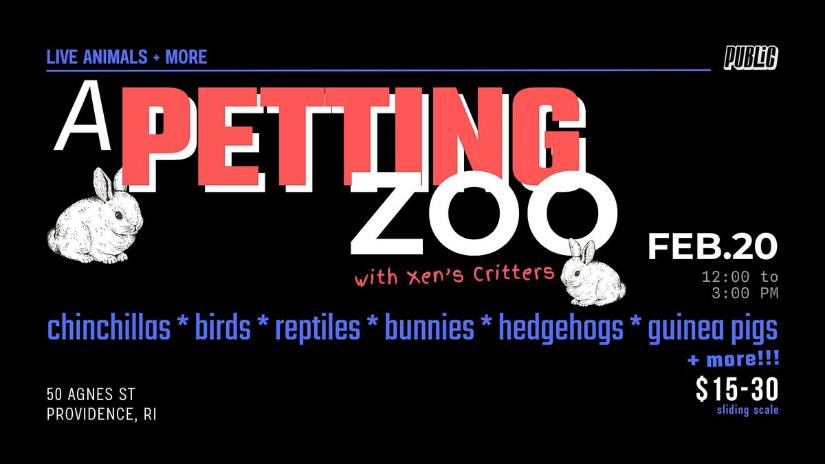 It's school vacation week and this petting zoo pop-up is great for the whole family. Xen will have a wide varity of critters for you to meet. You can just say hi, touch, or hold chinchillas, birds, reptiles, bunnies, and more!