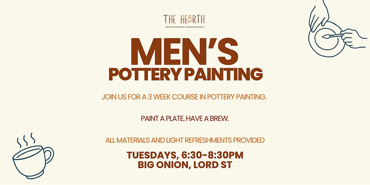 Join us for a relaxed three‑week Men’s Pottery Painting course starting 14th April.