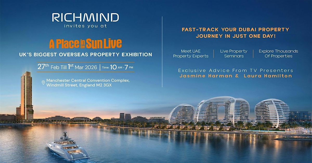 Join Richmind at A Place in the Sun Live, the UK’s largest overseas property exhibition, and fast-track your Dubai property journey in just one day.
