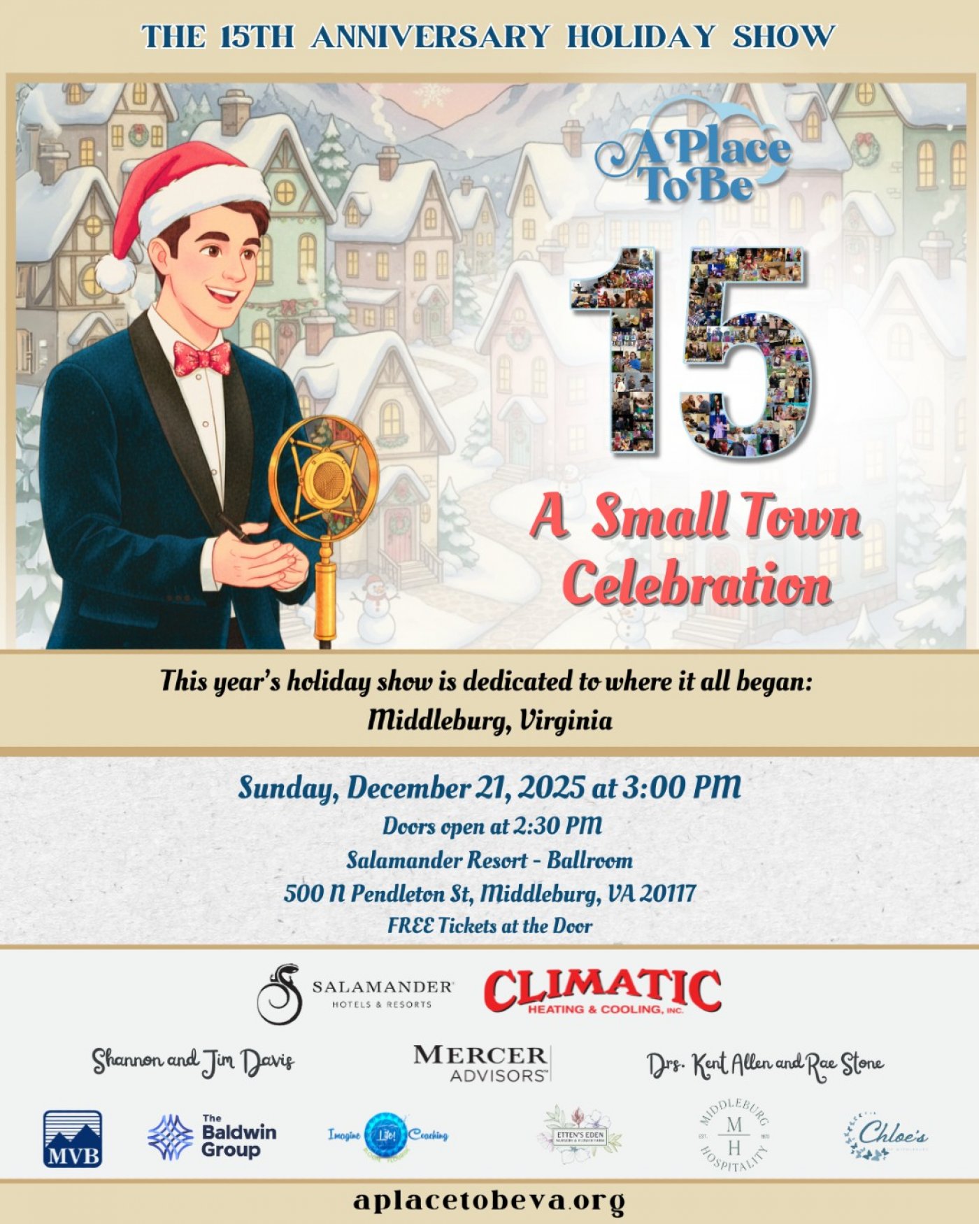 This holiday season A Place To Be brings its 15th annual holiday show to Middleburg’s Salamander resort! This free community event features music therapy clients from A Place To Be in a dazzling holiday show in the style of an old-fashioned Christmas special! You won’t to miss this night of music inspiring stories and community! The show is deigned to be perfect for all ages so bring the family and celebrate the season with A Place To Be