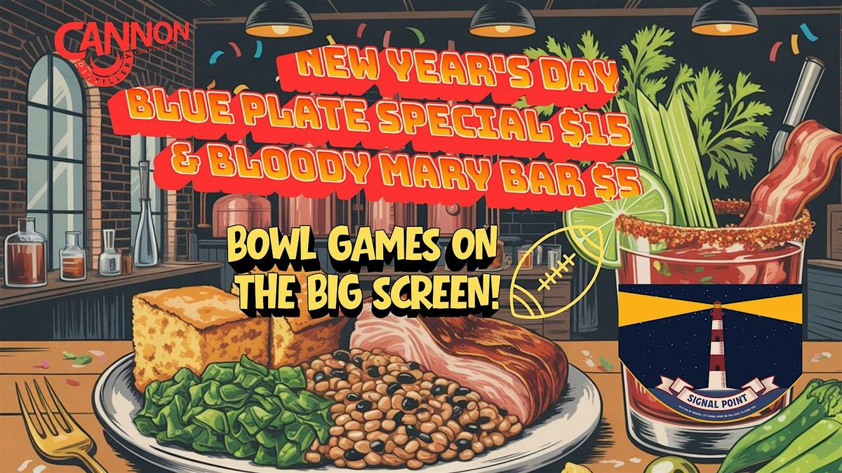 Come start the New Year out right @ Cannon Distillery, all day! Hoppin' Johns, pork, collards and cornbread for luck and prosperity! Only $15! Bowl Games on the big screen! Signal Point hair of the dog Bloody Mary bar - $5! Book a tasting and a tour for an extra good time!