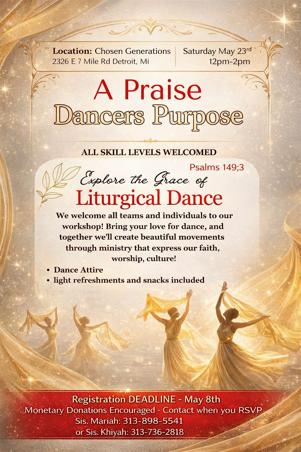 Join us in person for an uplifting event celebrating the power of dance and faith. Whether you're a dancer or just love the vibe, this is your chance to connect, move, and praise with a vibrant community. Come feel the energy, share the joy, and discover the true purpose behind every step. Don't miss out on this amazing experience!