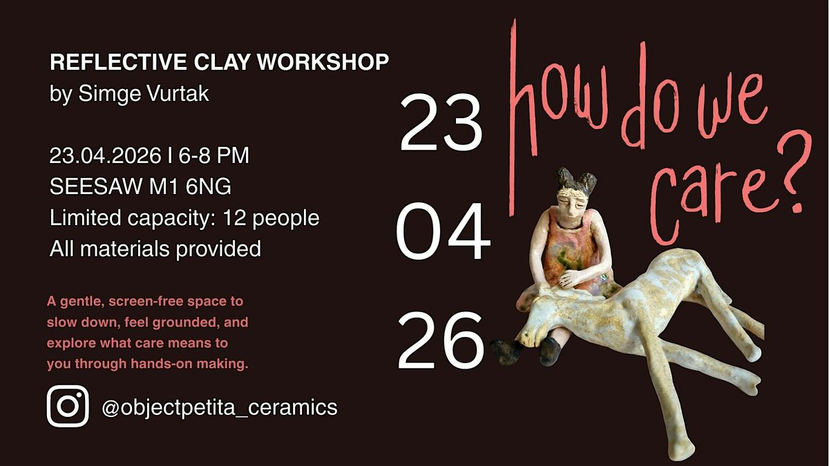 This session is for anyone curious about emotional expression, embodiment, and the act of caring; for oneself, for others, for the world. No experience with clay is needed, only openness and curiosity.