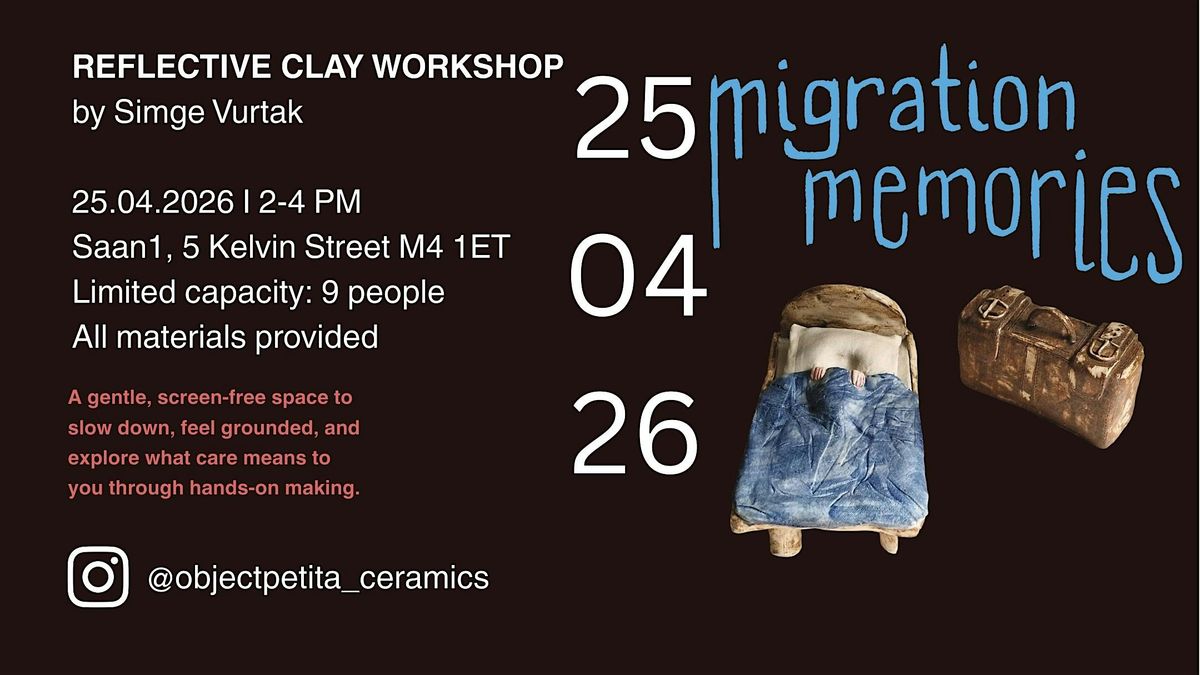 This session is for anyone curious about migration, memory, and emotional expression through making. No prior experience with clay is needed, only openness and curiosity.