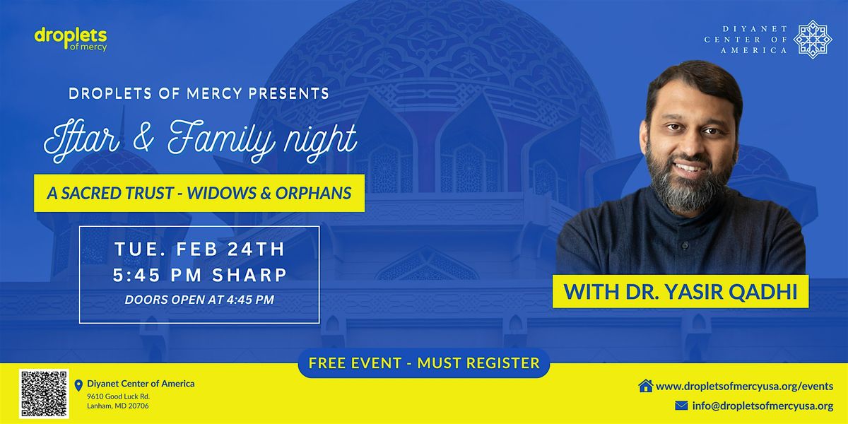 Join us for Iftar at the Diyanet Center of America on Feb. 24th, Insha'Allah! This Iftar & Family Night is all about supporting widows and orphans, and we are thrilled to have Dr. Qadhi leading the discussion. It's a free event, but make sure to register to secure your spot.