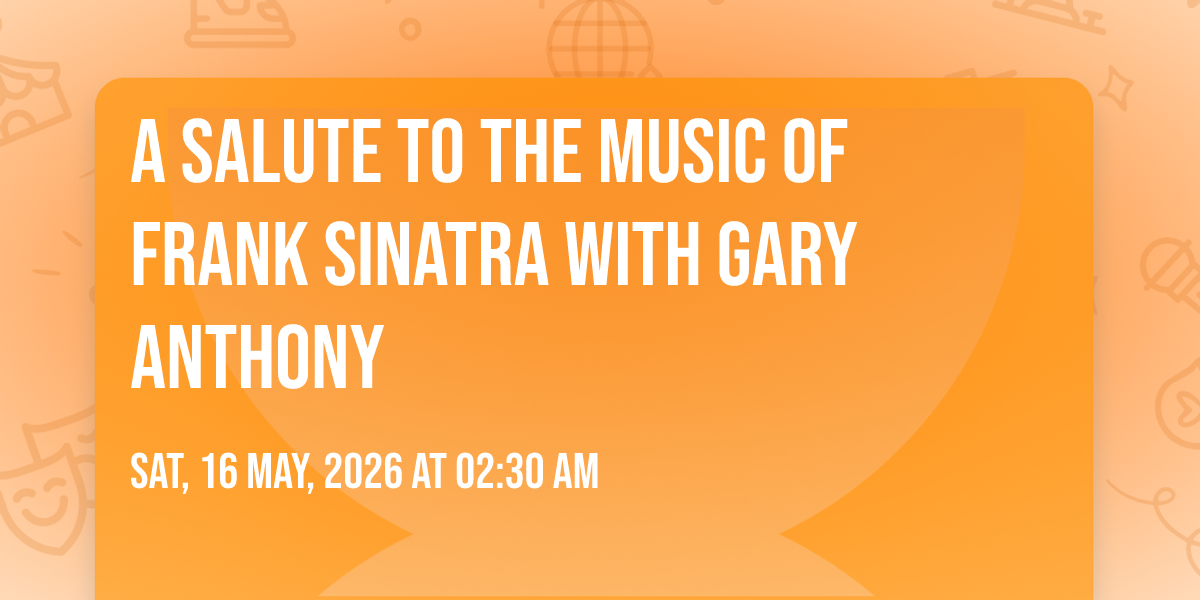 ๐ Location: 37.3308, -121.89โจ Enter a world of endless possibilities at A Salute to the Music of Frank Sinatra with Gary Anthony, where every moment tells a story! ๐๏ธ The stunning San Jose Civic in vibrant San Jose, CA transforms into a realm of wonder on May 16th, 2026 at 02:30 AM. ๐ They have crafted an experience that goes beyond the ordinary, combining elements of surprise, delight, and pure entertainment. Every detail has been thoughtfully considered to ensure your journey with us is nothing short of extraordinary. ๐ฏ Join fellow adventure seekers and memory makers in this celebration of imagination and innovation. ๐ Reserve your spot today and be part of something truly special!