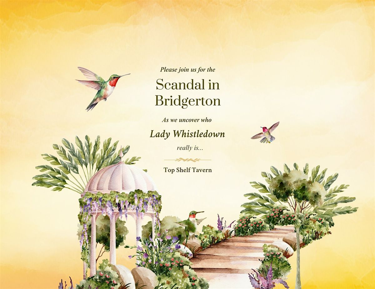 A shocking scandal has erupted in the ton, and the ever-watchful Lady Whistledown is at the center of it. Secrets, rumors, and hidden agendas swirl through Bridgerton society, and everyone is eager to protect their reputation. As whispers grow louder, you and the other guests must navigate a web of deception, uncover who Lady Whistledown truly is, and prove your innocence before your name appears in the next scandalous issue. Every alliance, every conversation, and every clue matters- becasue in a world where appearances are everything, being caught off guard could ruin you. Will you solve the mystery, or will the gossip of the ton seal your fate?