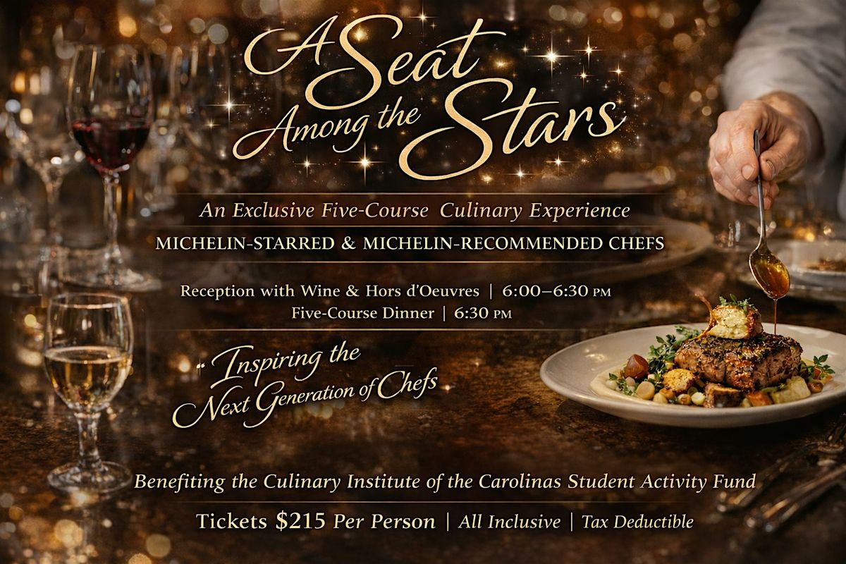 A Seat Among the Stars is an exclusive five-course dining experience featuring Michelin-starred and Michelin-recommended chefs collaborating side-by-side with students from the Culinary Institute of the Carolinas. This extraordinary event celebrates mentorship, innovation, and the vibrant culinary future of our region.