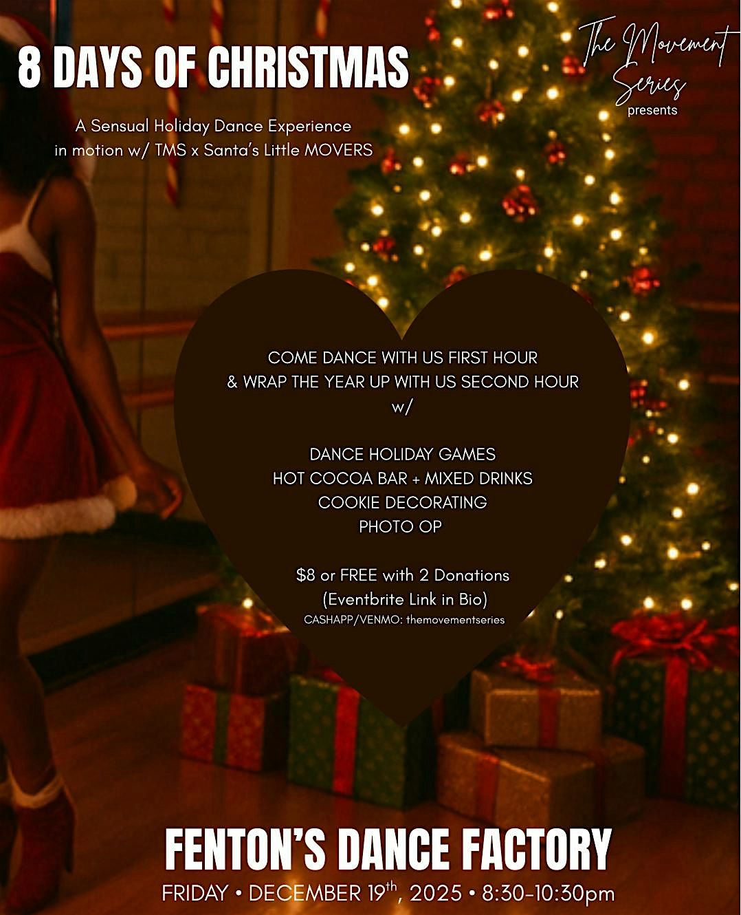 This experience blends warm Christmas nostalgia with grown, confident movement. Expect sleek neutrals, soft glam, warm lighting, and a sexy urban holiday energy.