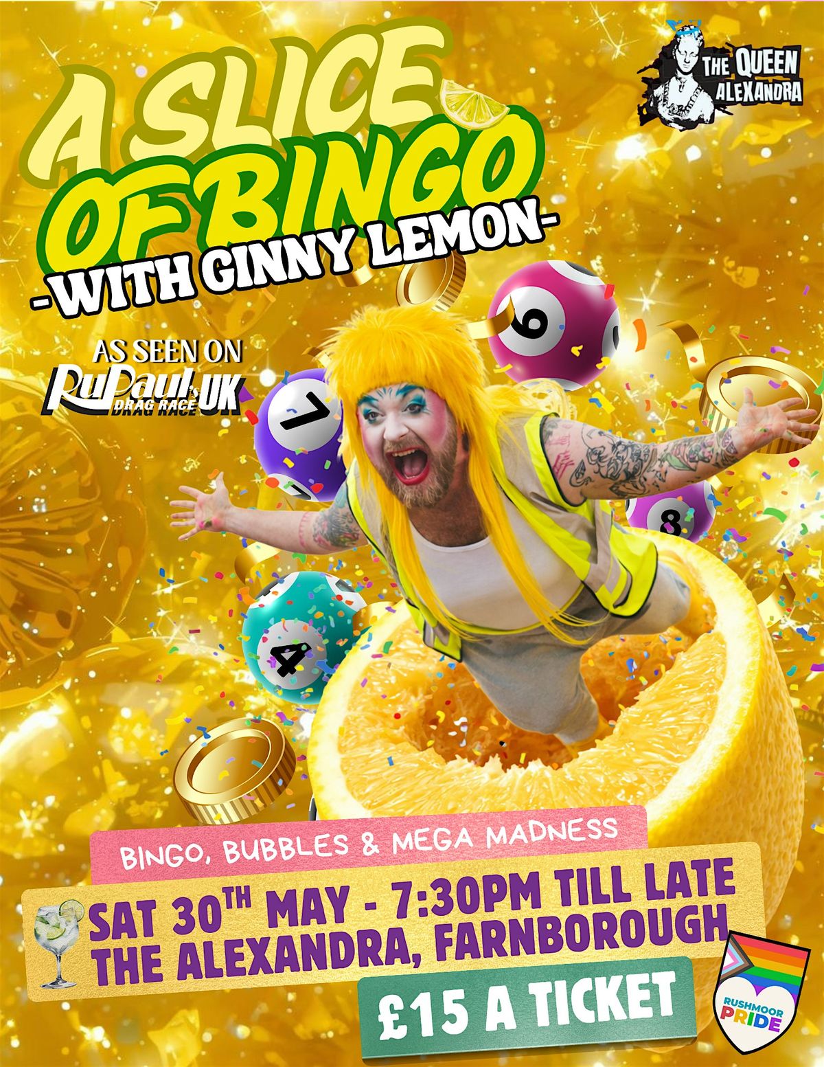 Rushmoor Pride is serving up something truly iconic… A Slice of Bingo with the one and only Ginny Lemon!
