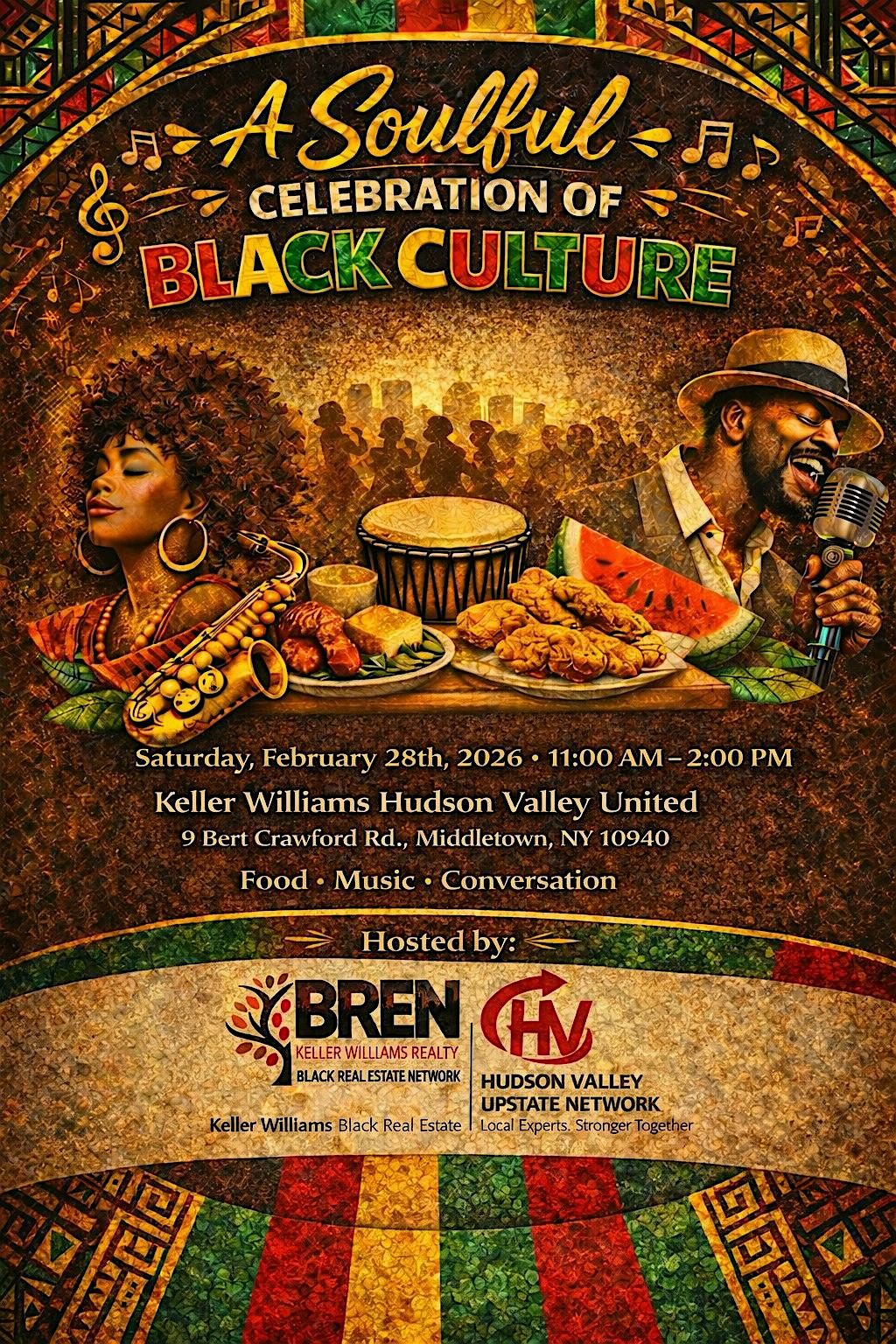 Come celebrate Black culture with food, music, and conversation at Keller Williams Hudson Valley United. Everyone is welcome!