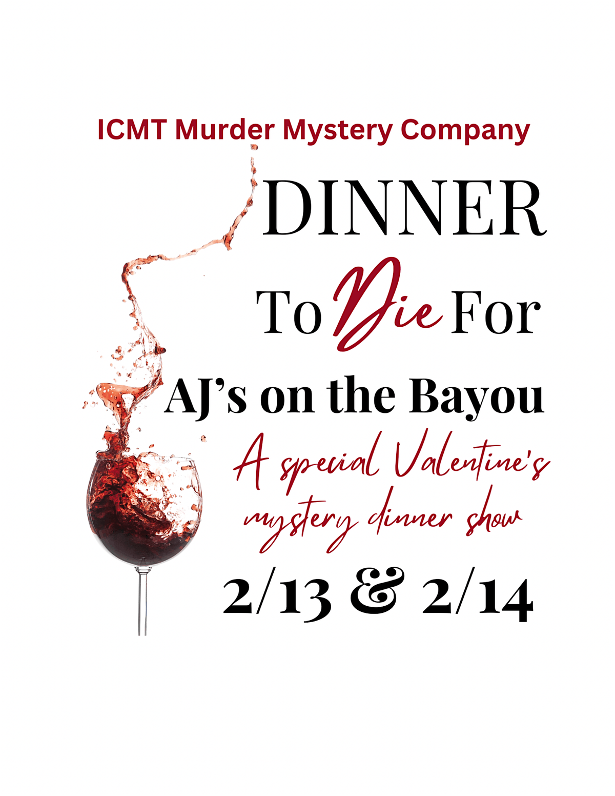 A special Valentine’s M**der Mystery at AJ’s on the Bayou
