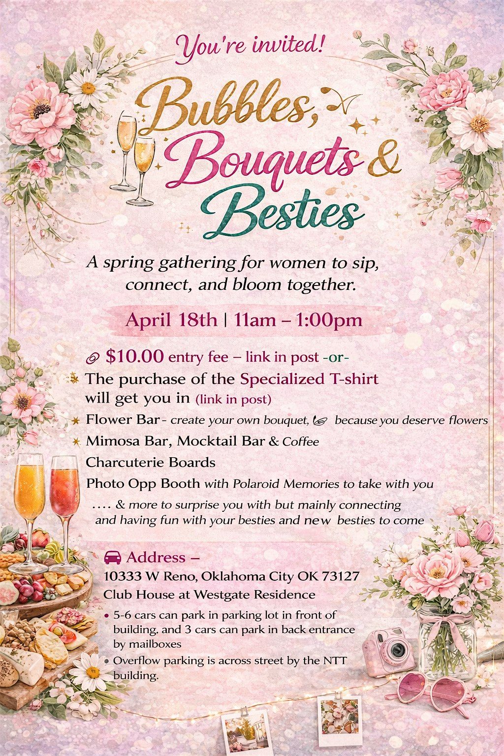 Bubbles, Bouquets & Besties“A spring gathering for women to sip, connect, and bloom together.”