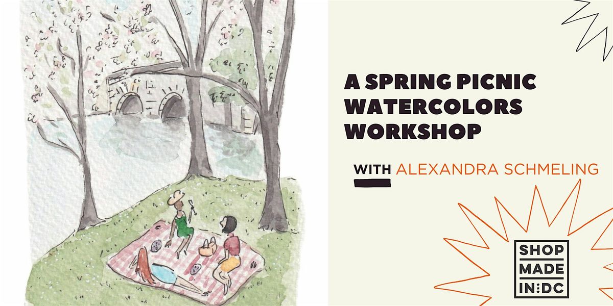 Celebrate Spring in the DMV with this guided 2-hour watercolor class. You will be provided with a pre-drawn image of a Spring picnic alongside a river and some cherry blossom tress.