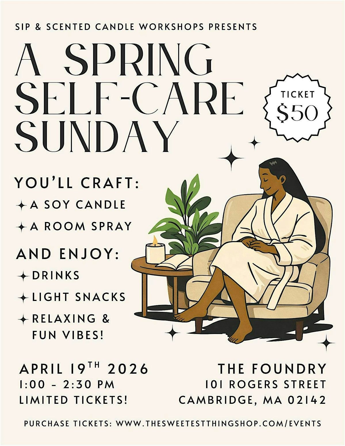 Need a break?! We've got you covered with A Spring Self-Care Sunday at The Foundry! Brought to you by Sip & Scented Candle Workshops! Limited seating with only 6 spots!