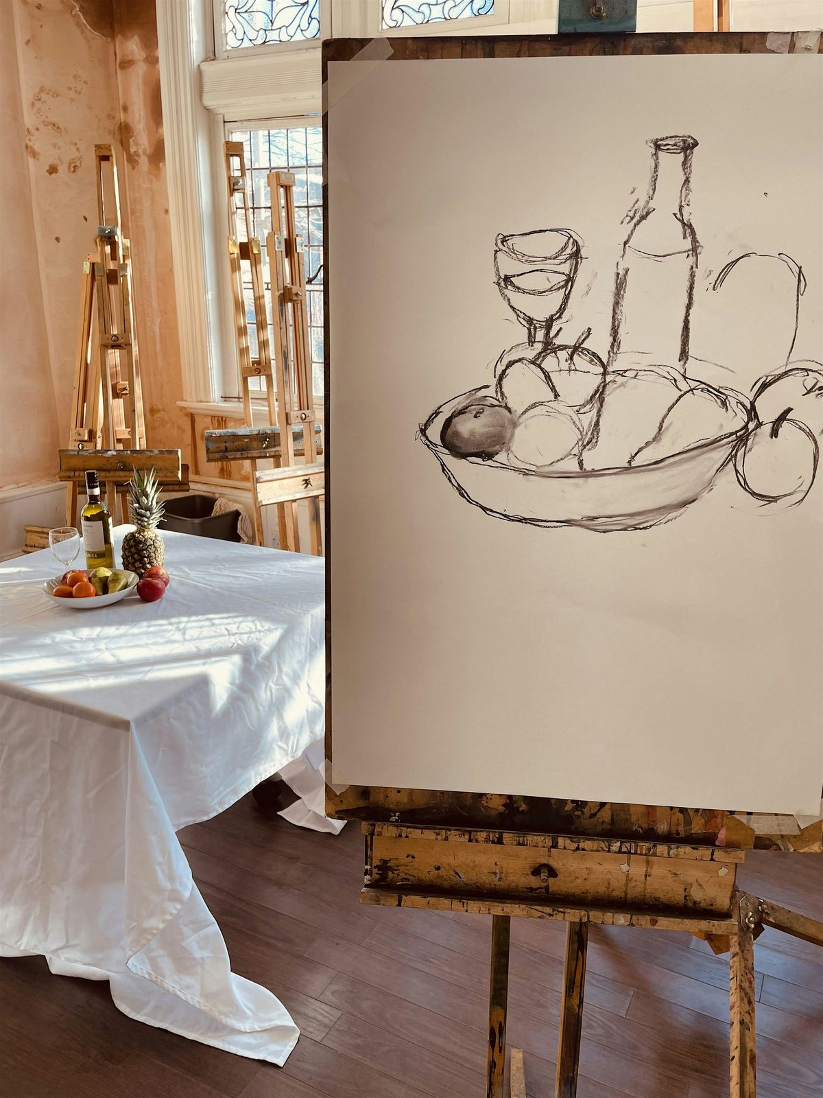 Each person will be set up on easels to draw a food related still life eg like a bowl of fruit