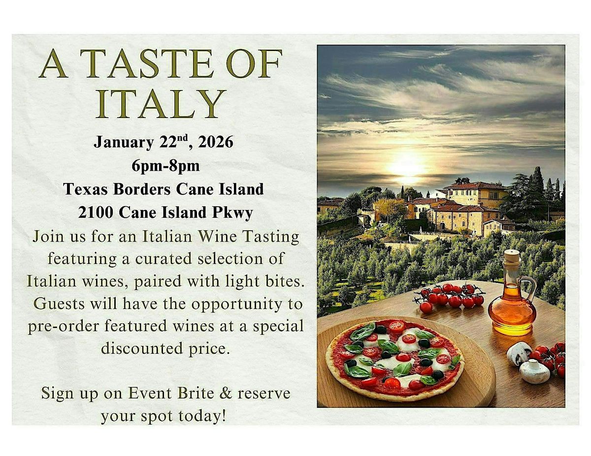 Join us for an Italian Wine Tasting featuring a curated selection of Italian wines, paired with light bites. Purchase your discounted wine!