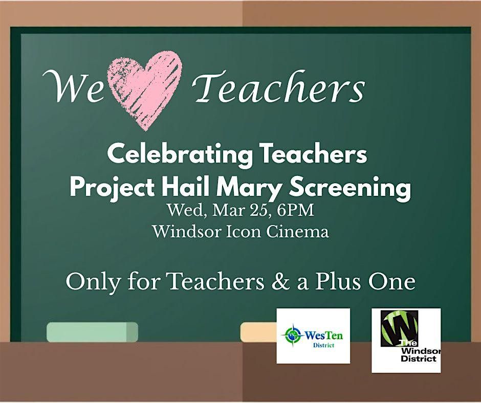 Teachers are invited to a FREE screening of Project Hail Mary on Wednesday, March 25, 6-8:30PM at Windsor Icon Cinema. You may bring a plus one. To register you must use your school email. This is only for teachers!!! We appreciate all you do.