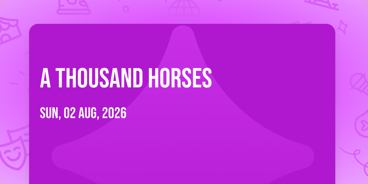 ✨ Experience the magic of A Thousand Horses, where moments become memories that last a lifetime! 🏛️ The iconic Turntable in Indianapolis, IN sets the perfect stage for an unforgettable celebration on August 2nd, 2026 at 07:00 PM. 🌟 It's been a curated experience that brings together the best of entertainment and innovation, creating an atmosphere of wonder and excitement. From the moment you arrive, you'll be immersed in a world where the ordinary transforms into the extraordinary. 🎊 Book early to secure your place in what promises to be an event that will be talked about for years to come!http://maps.seatics.com/GeneralAdmissionEvent_2021-07-08_1018_05302024_160226_SVGC_tn.png