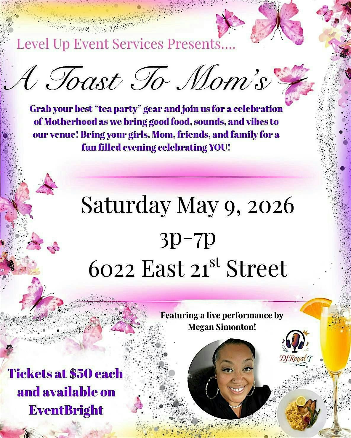 Join us at the Next Level Event Suite for an elite celebration dedicated to all the amazing Mothers out there! This is the perfect opportunity to wear your best "tea party" gear and share laughs, make memories, have a pre-Mother's Day dinner, and raise a glass in honor of those special ladies. Come and enjoy a warm, fun-filled atmosphere with a live performance by Megan Simonton and sounds by Dj Royal-T! Don’t miss out on this amazing heartfelt toast to Mom's everywhere!