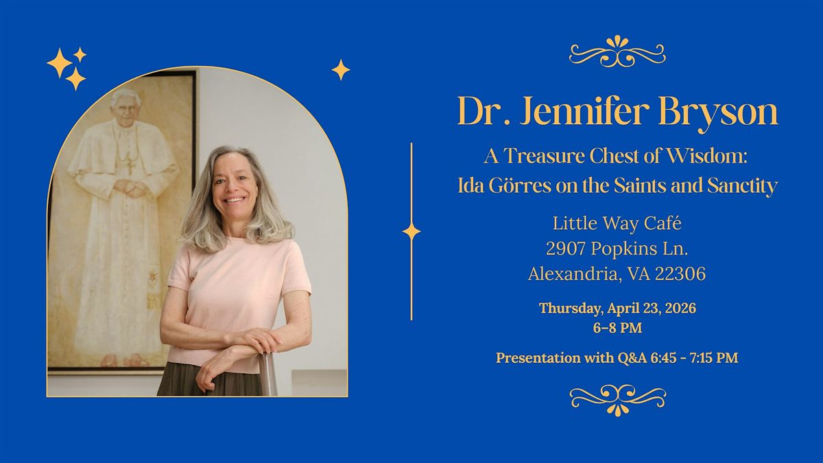 Dr. Jennifer S. Bryson will present Ida Görres on the Saints and Sanctity at the Little Way Café at St. Louis in Alexandria on Thursday April 23 from 6:45-7:15 including Q&A. Doors open at 6 and close at 8 for social.