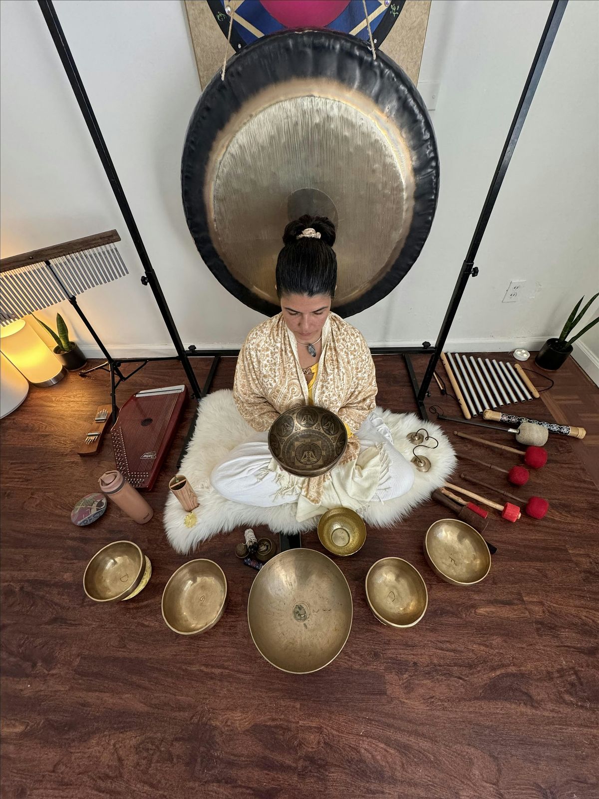 Sound Healing: The journey culminates with a soothing sound bath, where Tibet singing bowls, gongs sound, chimes, therapy harp and other resonant instruments envelop the space in harmonious vibrations to allow participants to drop into their parasympathetic nervous system. The sound waves penetrate deeply, aiding in integration and promoting a state of blissful relaxation. This sonic journey enhances the meditative experience, allowing participants to drift into a serene state of awareness, where they can connect more deeply with themselves and the energies around them.