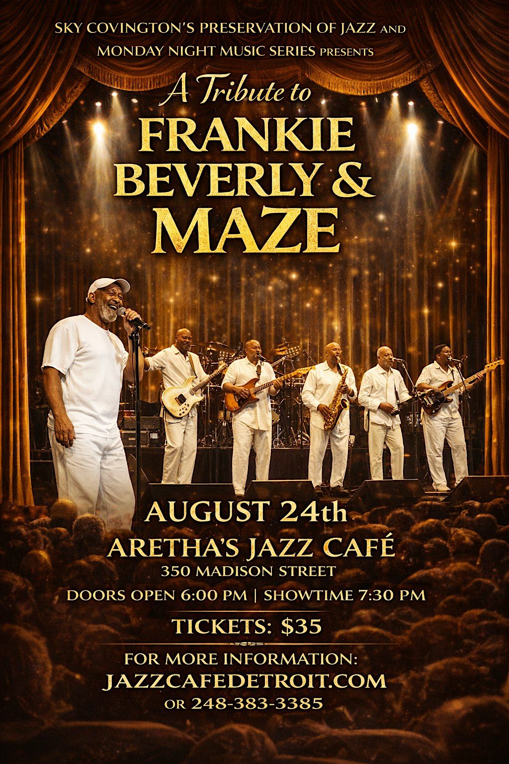 Get ready for an unforgettable night celebrating the smooth grooves and soulful sounds of Frankie Beverly & Maze! Join us in person as we dive into their classic hits and timeless vibes. Whether you’re a longtime fan or new to the magic, this tribute event promises great music and good times. Don’t miss out on this soulful journey – come sing, dance, and feel the love live!