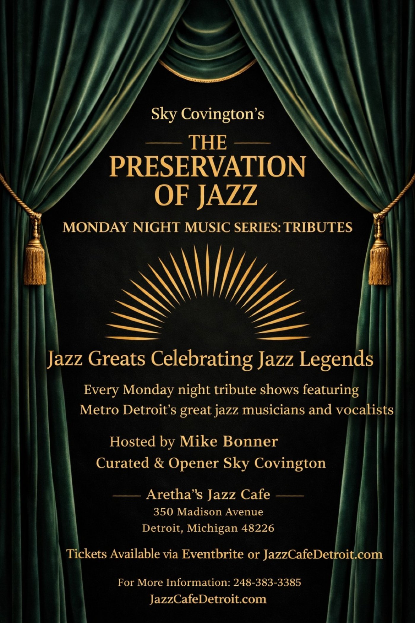Venue: Aretha’s Jazz Café (inside Music Hall Center, 350 Madison St., Detroit, MI)