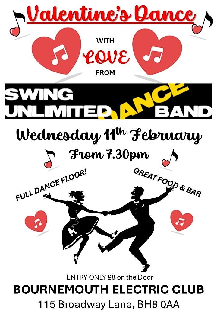 17-piece SUBB Dance Band invite you to Swing Unlimited Jazz Club for a Valentine's Dance party filled with love!