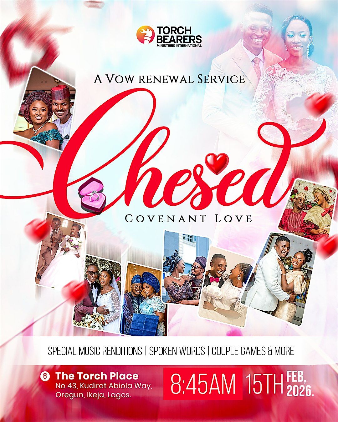 Join us for A Vow Renewal Service, Themed - Chesed: Covenant Love, for married couples, celebrating God's enduring mercy, love, and faithfulness in marriage. This service is open to married couples who desire to intentionally renew their vows and deepen their walk together in covenant.