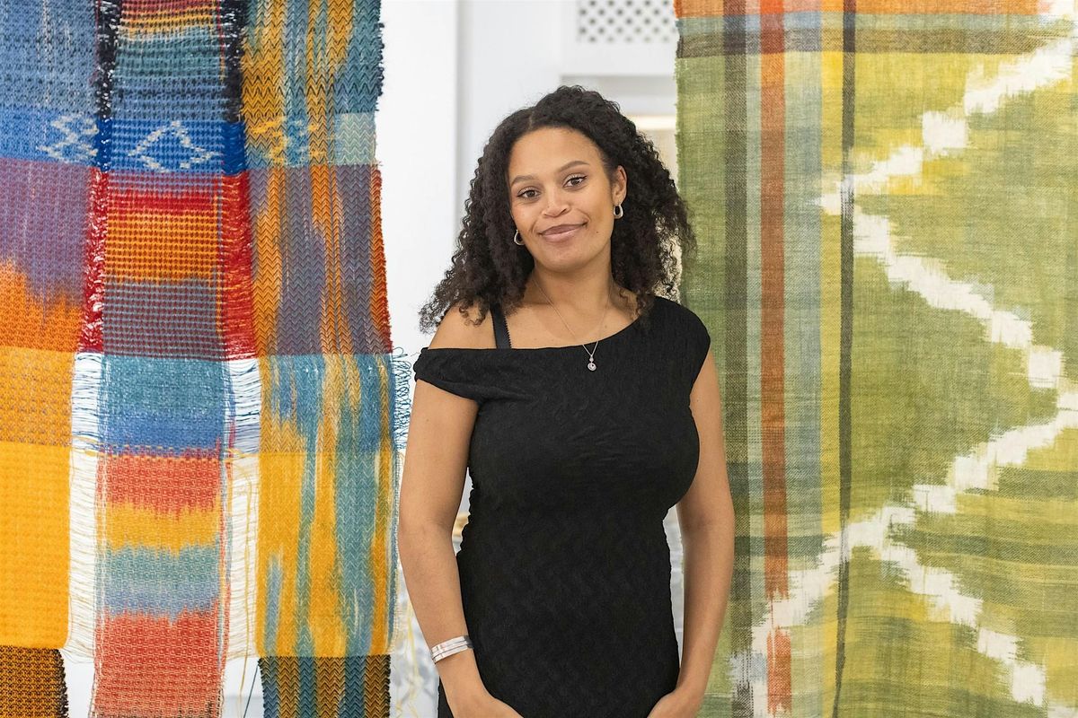 Ashanti Farquhar is a mixed-race Jamaican textile designer and weaver whose work explores identity, heritage, and belonging. She studied at the Royal College of Art (RCA), developing a distinctive practice that blends materials, colours, and patterns to reflect her multifaceted cultural background.