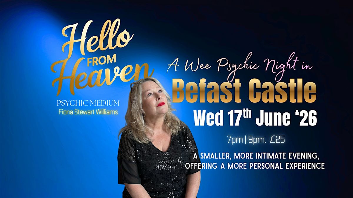 Be part of an intimate evening of magical mediumship as Fiona Stewart Williams, Psychic Medium, brings her Hello from Heaven tour to the Belfast Castlel. A small group of individuals - will enjoy the psychic insights and spiritual connections, seating is limited. Ticket Only event!