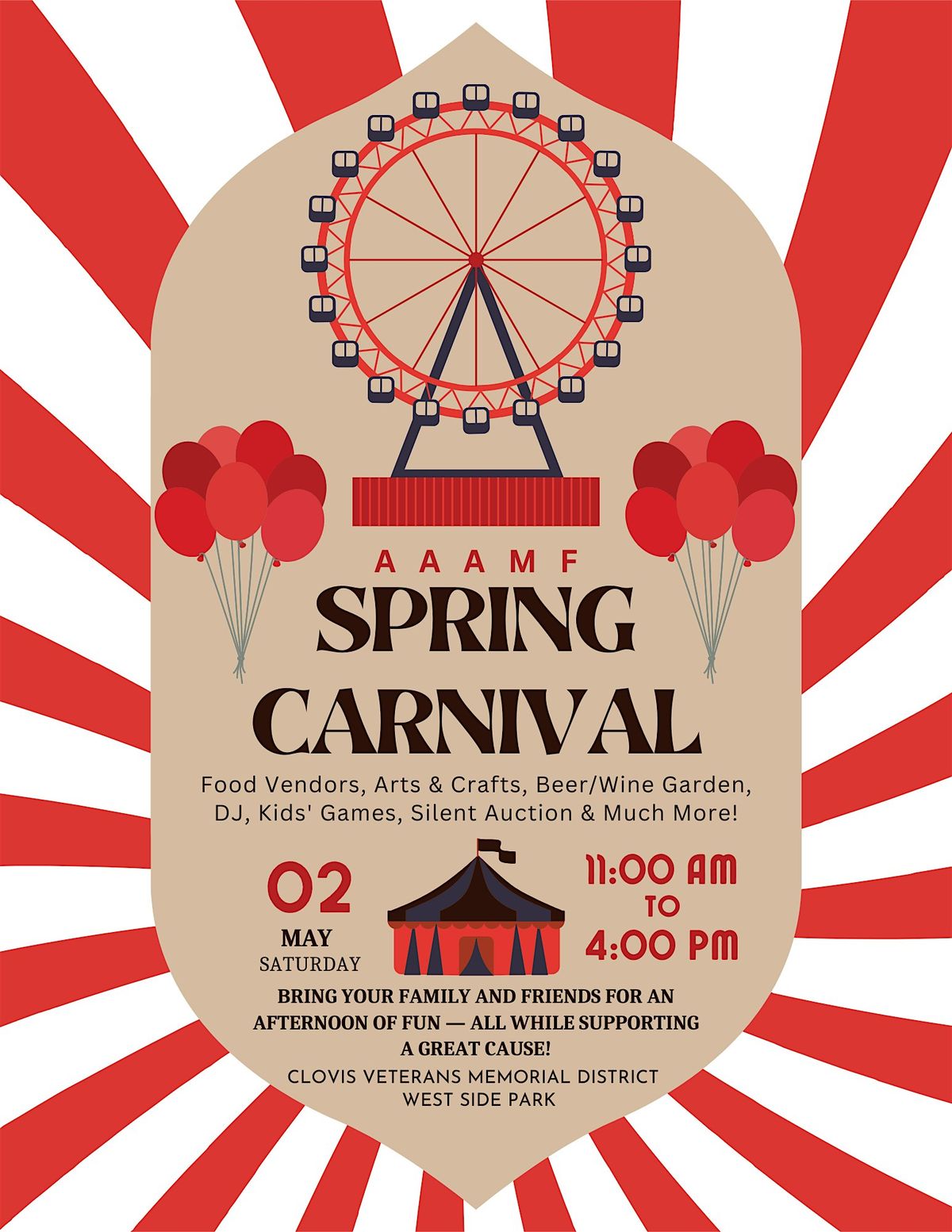 Get ready for an awesome day out at the AAAMF Spring Carnival! This super fun, in-person event is perfect for hanging out with friends, enjoying great vibes, and soaking in the springtime energy. With exciting activities and a lively atmosphere, you wonโt want to miss it!