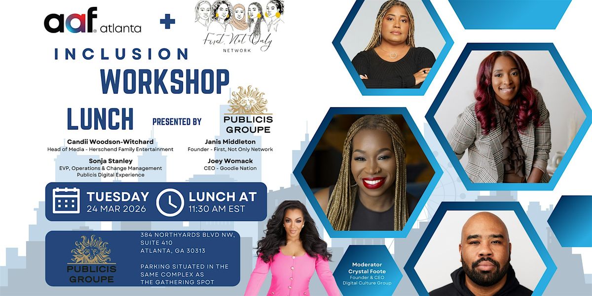 On March 24th, we're partnering with First, Not Only Network for our 5th AAF Atlanta Inclusion Workshop Lunch, after having our dynamic four-part 2025 event series dedicated to advancing diversity and inclusion in advertising. This event is bringing together industry leaders, innovators, and advocates to share insights and strategies for shaping a more inclusive and impactful advertising landscape. Our March 24th Workshop will focus on Build It From Within, Build It Beyond: Empowering Intrapreneurs & Entrepreneurs to Lead the Future presented by Publicis.