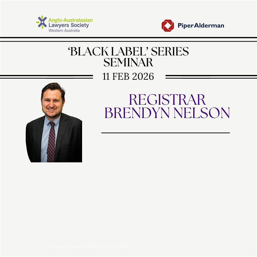Anglo-Australasian Lawyers Society (Western Australia) presents a 'Black Label' series seminar featuring REGISTRAR NELSON: