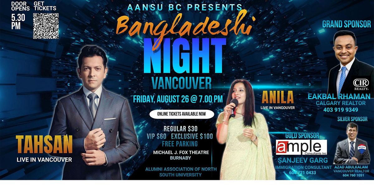 AANSU BC Presents Bangladeshi Night Vancouver with Tahsan and Anila!About this Event