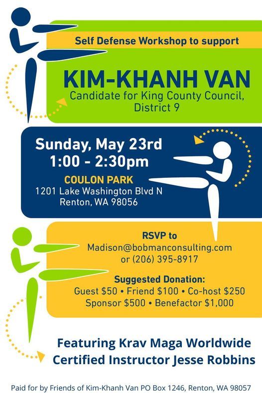 Join us on Sunday, May 23rd at 1:00PM at Coulon Park in Renton for a comprehensive and fun self defense training led by Jesse Robbins - a Krav Maga Worldwide Certified Instructor.